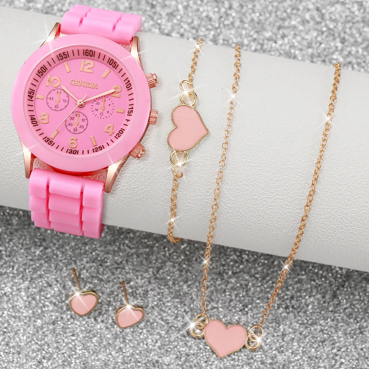 - 5/6PCS Women Watches Fashion Silicone Band Women Quartz Watches Jewelry Set Reloj Mujer Girls Clock Gift (Without Box)
