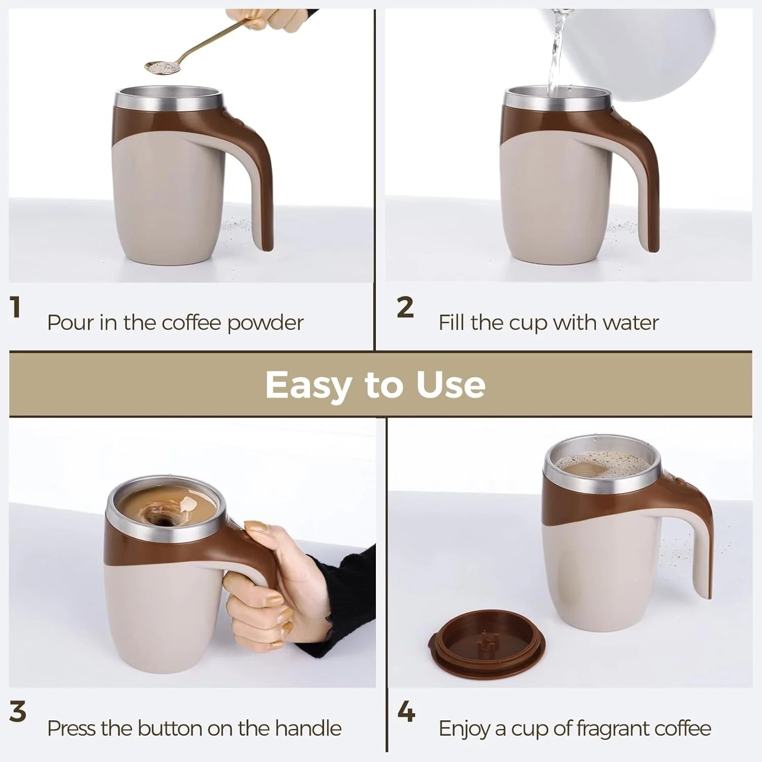 The Stainless Steel Automatic Self Stirring Mug Is Designed For Effortless Mixing Of Coffee, Milk, Juice, And Other Beverages. Featuring Magnetic Stirring Technology, This Mug Ensures Smooth And Even Blending Without The Need For A Spoon. Made From High-Quality Stainless Steel, It Is Durable, Easy To Clean, And Perfect For Daily Use At Home, In The Office, Or While Traveling. Enjoy Your Favorite Drinks Conveniently With This Modern And Practical Self Stirring Cup.