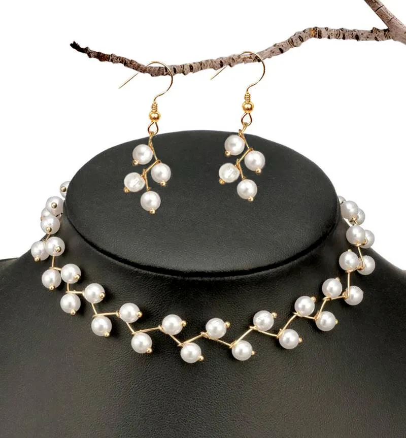 - White Stone Pearl Zigzag Ladies Necklace For Women - Simple Choker - Ladies Haar - Neckless For Girls - Women Pendants - Wedding Necklace